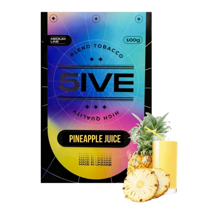 Табак 5IVE Medium Pineapple Juice (Ананасовый Сок) 100 гр – нежный фруктовый вкус ананасового сока. Идеальный вариант для соло, но также можно миксовать.