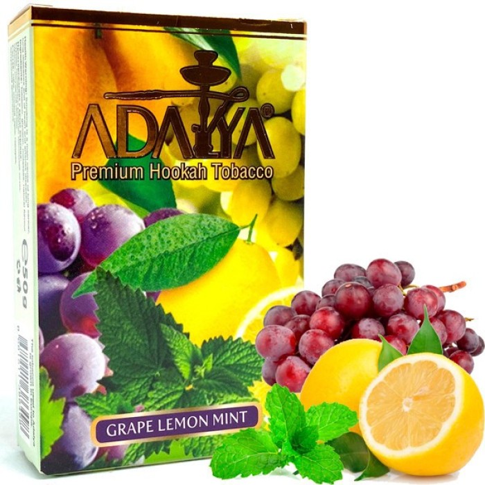 Бренд Adalya – это всегда гармония и качество вкусов для кальянных покуров. Соединив вместе гениальную кальянную троицу (виноград, лимон и мята), производители создали насыщенный и яркий микс Adalya Grape Mint Lemon. Версия получилась очень любопытной, с яркими виноградными нотками, пикантностью лимонной цедры и свежестью перечной мяты. Это позволяет обрести табачной заправке ноты сладости, насыщенности и прохлады. Она идеальна в соло покурах и для использования в миксах. Если добавить сладких муасселей, то получится настоящая кальянная сангрия. Для производства этого сорта использованы отборные листья Вирджинии, которые вымачивают в европейских сиропах, патоке и мёде. Смесь жаростойкая, средней крепости, с повышенной дымностью. Она полностью готова к употреблению благодаря мелкой нарезке и прекрасной сиропности. Для покуров лучше использовать глубокий чилим, в котором перед прогревом перемешать муассель до состояния воздушности.