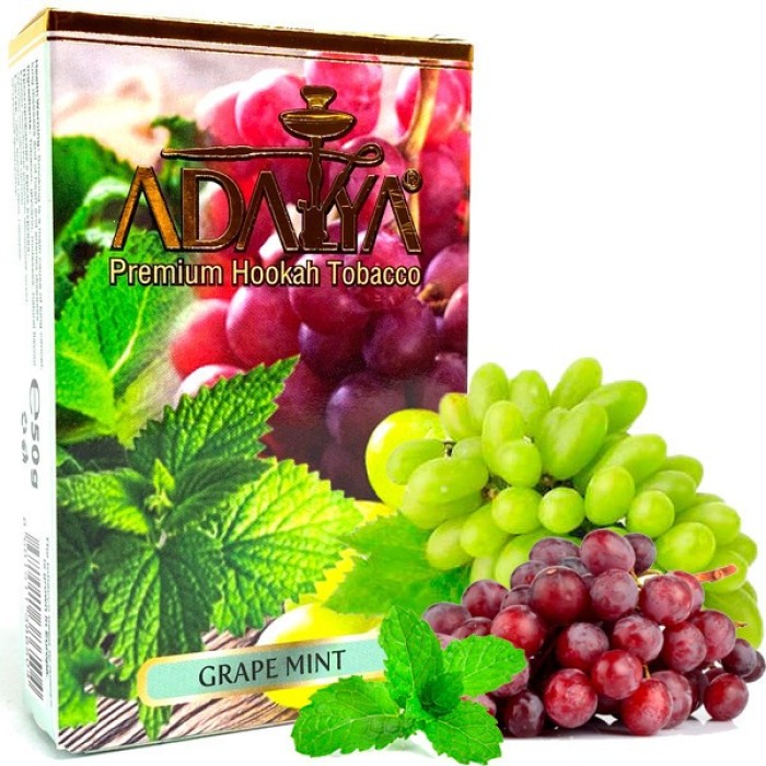Табак для кальяна Adalya Grape Mint (Адалия Виноград Мята) – Классный микс насыщенного винограда и свежестью мяты. Отличный вариант для соло покуров.