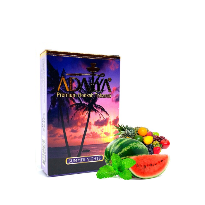 Табак для кальяна Adalya Summer Nights (Адалия Летние Ночи) - а каков ваш вкус летних ночей? У Адалии вкус летних ночей ассоциируется со свежим сладковатым вкусом, с явными нотками арбуза, совсем небольшой долей мяты и чем-то еще что сложно уловить. Вкус легкий, приятный и достаточно хорошо заходит в соло. Ну а что еще нужно?