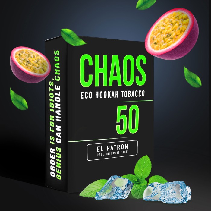 Табак Chaos El Patron (Маракуйя Прохлада) 50 гр - Это мягкий микс сочной и сладкой маракуйи со льдом. Прохладный летний коктейль Маракуйя со Льдом идеально подойдет для летних посиделок с кальяном. Однако, актуален он будет и в остальное время года, ведь это – классическое сочетание сладости с ментоловым привкусом!.