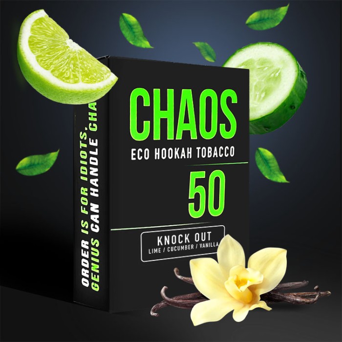 Табак Chaos Knock Out (Лайм Огурец Ваниль) 50 гр - Нормальность Вышла из чата? - подумаете вы. А если нокаутировать нормальность. И погрузится в яркий аромат лайма с огуречным оттенком, ДОПОЛНЕНИЯ сладкою нотой ванили. Вкус очень сочный и свежий.