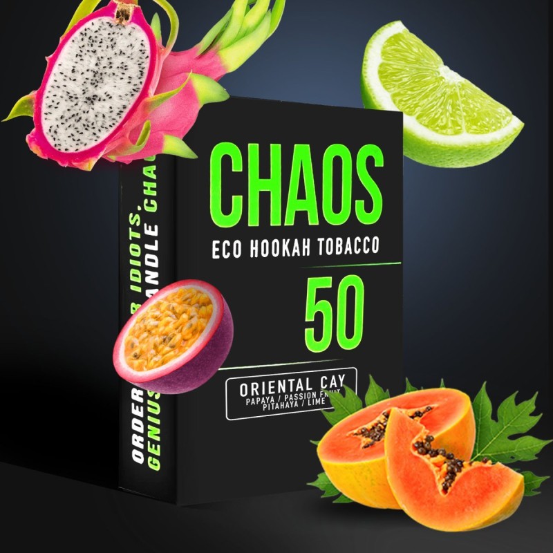 Табак Chaos Oriental Cay (Папайя Маракуйя Питахайя Лайм) 50 гр - В этом табаке собрана крайне широкая и яркая палитра вкусов, которые раскрываются один за другим. Зачем тратить деньги и покупать экзотические фрукты, если все это можно ощутить в представленном варианте? Oriental Cay как олицетворение Таиланда: позволяет расслабиться и насладиться дарами природы
