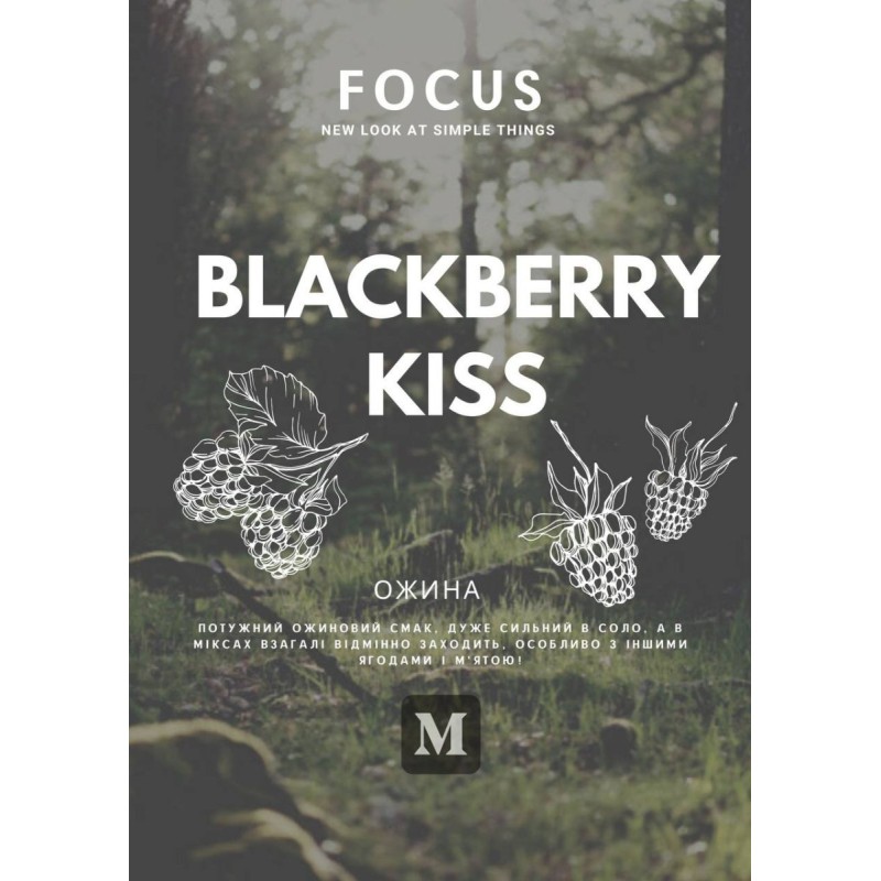 Табак «Focus Blackberry Kiss 200 гр-очень Мощный ежевичный вкус, очень сильный в соло, а в миксах заходит отлично с ягодами и мятой