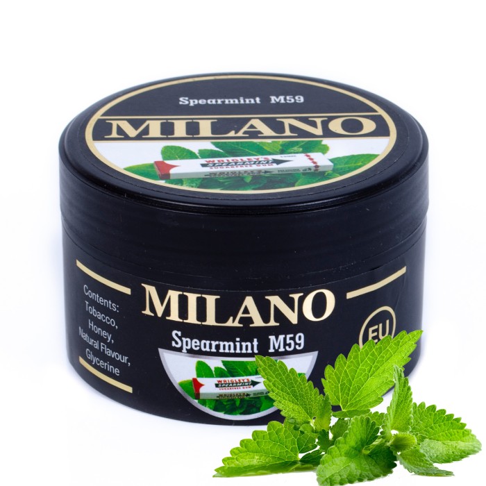 Milano Spearmint M59 – исключительная новинка появившаяся на рынке табачных изделий в 2019 году. Данная курительная смесь очаровывает небывалой мятной свежестью. Заправка идеальна для курения в летний период – она охлаждает и позволяет глубоко вздохнуть после изнурительного рабочего дня.