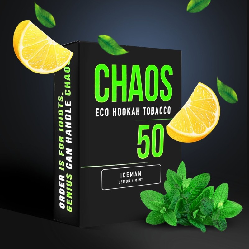 Тютюн Chaos Iceman (Лимон М'ята) 50 гр - Це яскрава свіжість та багатство аромату. Він «розбудить» вас натуральним смаком лимона і хвильою, що бадьорить, крижаної м'яти. Кислинка цитрусу та пікантність прянощі створюють цікавий мікс із легкими фруктовими відтінками. Кисло-солодкий, ніжний і водночас освіжаючий, ніби перед вами лежать соковиті скибочки лимона і тільки зірвані листочки м'яти.