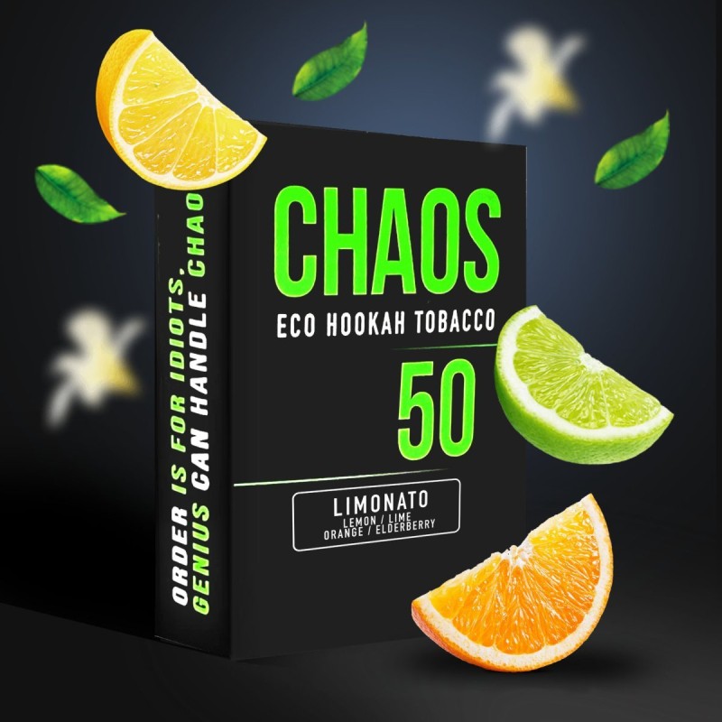 Тютюн Chaos Limonato (Лимонад Лайм Апельсин Бузина) 50 гр - свіжий лимонад з лаймом, апельсином та бузиною. Оригінальний, кислий аромат лайма та апельсина розбавлених легкими нотками бузини.