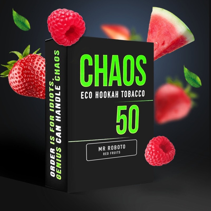 Тютюн Chaos Mr Roboto (Червоні Фрукти) 50 гр – червоні фрукти. Є приємним та ненав'язливим смаком. Поєднання різних фруктів з кислими та солодкими нотками відмінно поєднуються між собою та створюють незабутній фруктовий смак.