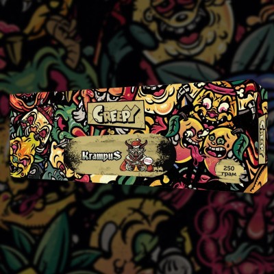 Найбільш популярним серед поціновувачів димного відпочинку є Тютюн Creepy Krampus (Крампус, 250 г). Основа кальянної заправки: тютюновий лист Burley високої якості, а також натуральні ароматизатори, патока та чистий гліцерин. Тому тютюн для кальяну має насичений смак, приємний аромат і утворює густий дим. Ці властивості тютюнової суміші - основні складові відмінного проведення часу.